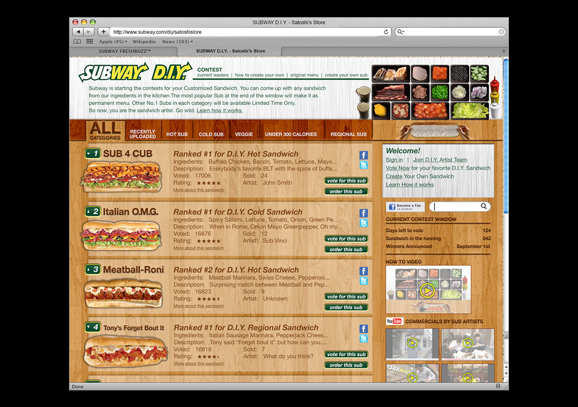 Samsung's Global CDM Campaign, Liberty Mutual's Internal Microsite, Cigna's Website and Subway's online ordering system and interactive campaign (concept)